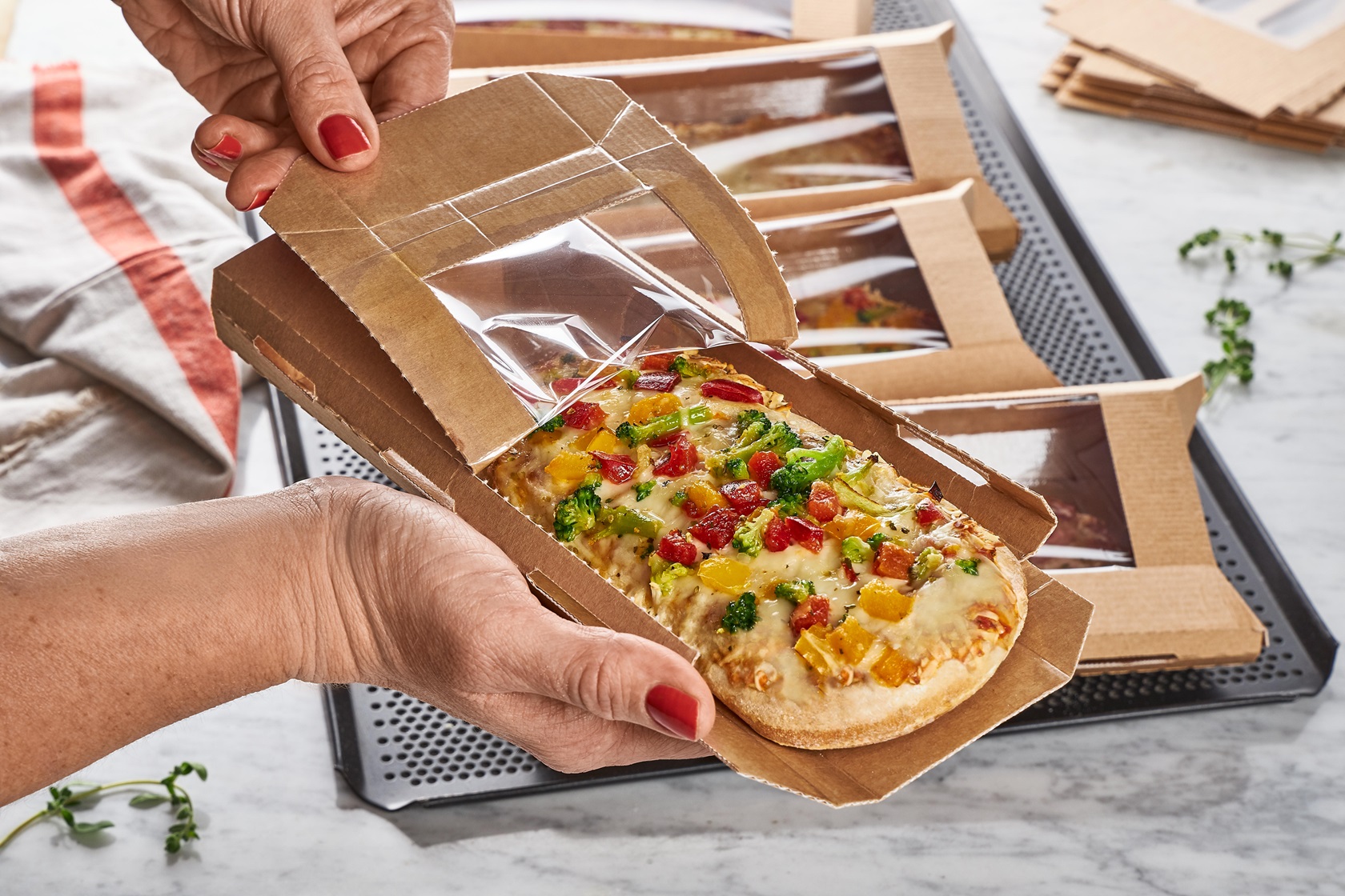 Für die Entwicklung der neuen Snackhülle hat sich Dr. Oetker Professional mit zwei marktführenden Partnern zusammengetan und damit die Kompetenzen aus Geräte-, Verpackungs- und Produktherstellung ideal verbunden. Die Hülle vervollständigt den Konzept-Ansatz der Pizza Snacks ideal und macht diesen zur innovativen Komplettlösung, die neben den Produkten auch passendes Werbematerial sowie Non-Food-Equipment beinhaltet.