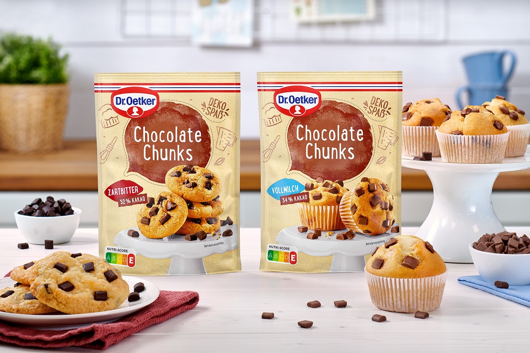 Die neuen Dr. Oetker Chocolate Chunks in den zwei beliebtesten Schokoladensorten Zartbitter und Vollmilch* sorgen durch ihren intensiven Schokoladen-Geschmack für noch mehr Genussmomente. Ob in Muffins, Cookies und Kuchen eingebacken oder als besonderes Topping – die backstabilen Chocolate Chunks sind vielfältig einsetzbar und sorgen durch ihre Größe für einen extra schokoladigen Biss. Die trendigen Chocolate Chunks eignen sich zudem ideal für das angesagte „American Baking“ und verwandeln Gebäcke und Desserts, passend zu amerikanischen Themenwochen oder Football-Events, in schokoladige Highlights.
