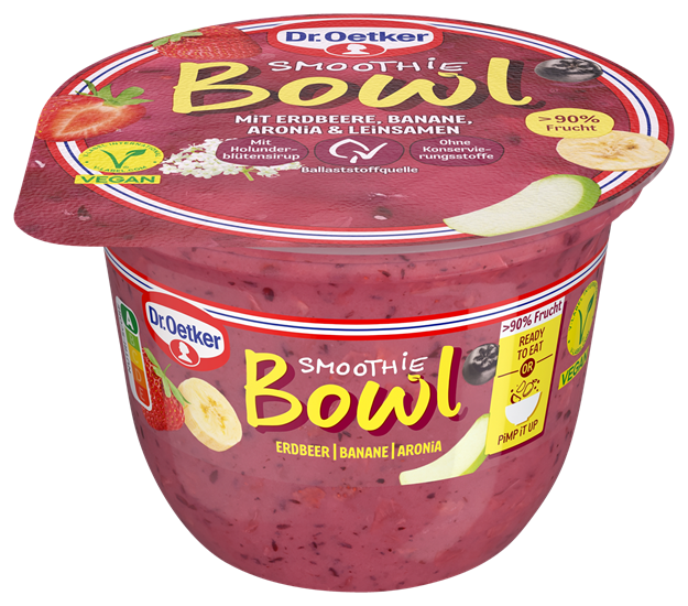 Aufgrund von Patulin-Rückständen ruft die Dr. Oetker Nahrungsmittel KG vorsorglich das Produkt „Smoothie Bowl mit Erdbeer, Banane, Aronia und Leinsamen“ zurück. Betroffen sind 200g Becher mit folgenden Angaben: