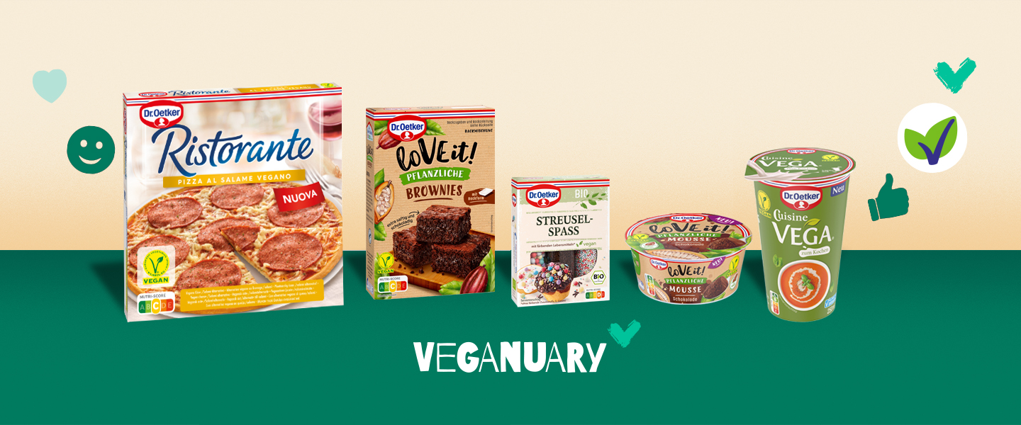 Mit dem Veganuary werden vor allem Menschen angesprochen, die nur ab und zu und wenig tierische Lebensmittel konsumieren. Immer mehr Konsumentinnen und Konsumenten entschei-den sich dadurch dauerhaft für eine pflanzenbasierte und klimaschonende Ernährung. Die Nachfrage nach nicht-tierischen Produktalternativen und veganen Zubereitungsmöglichkeiten steigt daher zunehmend – auch bei Dr. Oetker. Das Unternehmen verfolgt das Ziel, auch mit kleinen gemeinsamen Schritten wie der Produktion von veganen Lebensmittelalternativen und der Beteiligung am Veganuary, einen bedeutsamen Unterschied für den Klimaschutz zu schaffen. Deshalb möchte Dr. Oetker den Interessierten eine Auswahl an veganen Produkten bieten, die Entscheidung über die Ernährungsform aber den Konsumentinnen und Konsumenten selbst überlassen: „Wir bieten ihnen die Möglichkeit, einen kleinen Beitrag zu leisten, ohne auf leckere Genussprodukte wie Kuchen, Desserts oder Pizza zu verzichten“, erklärt Dr. Oetker Masterbrand Managerin Marina Landgraf.