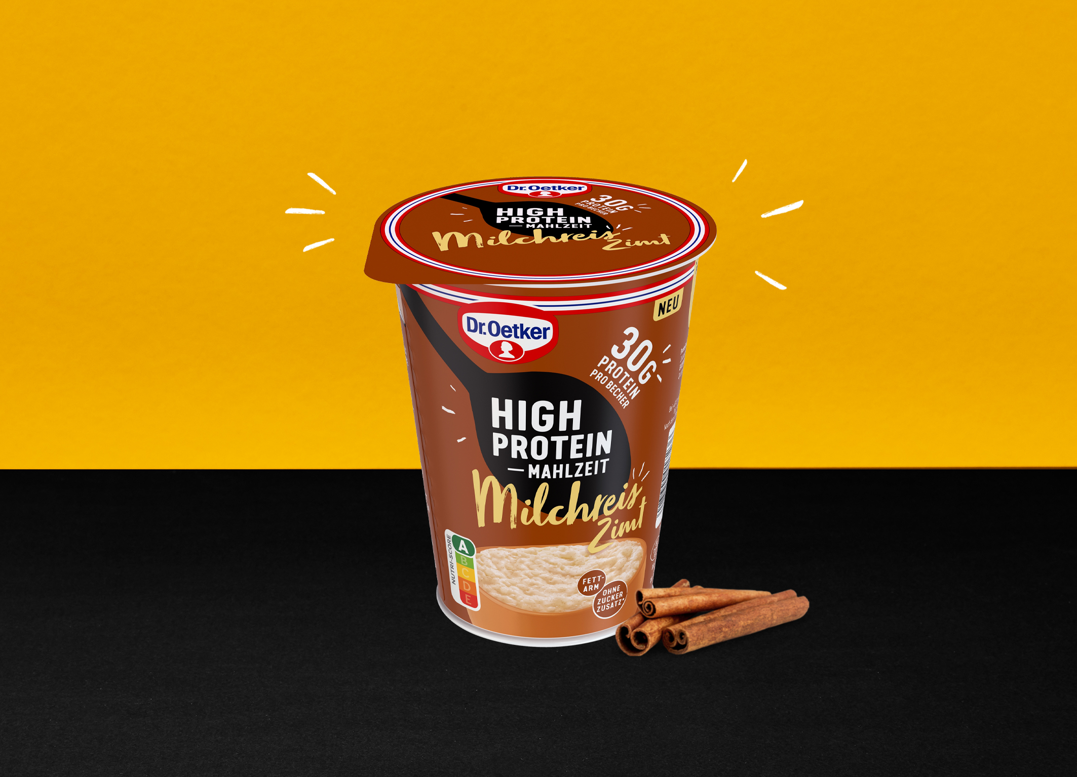 Nach dem erfolgreichen Start des High Protein Milchreis Natur ergänzt Dr. Oetker das Sortiment um den High Protein Milchreis Zimt.