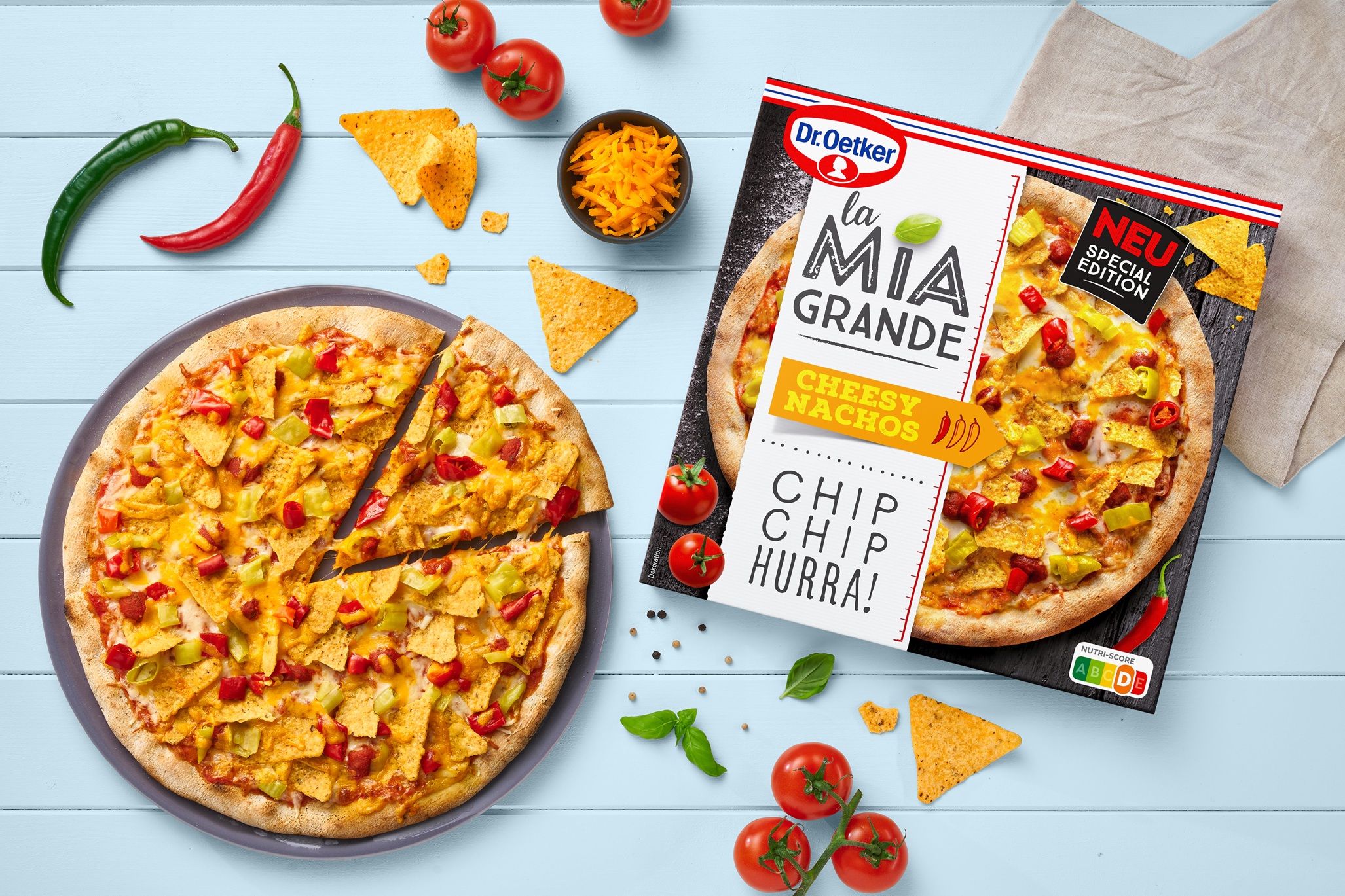 Ab März 2026 ergänzt die La Mia Grande Cheesy Nachos das beliebte Pizza-Sortiment von Dr. Oetker als Special Edition.