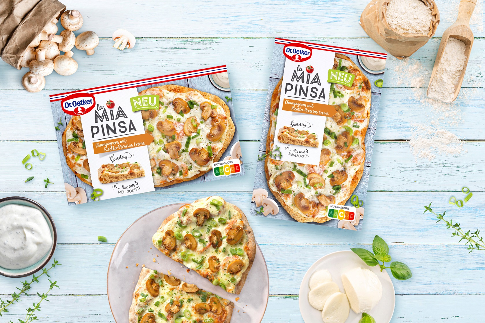 Bielefeld, Januar 2024 – Mit der Beliebtheit der Pinsa wächst ab März 2024 auch die Sorten-auswahl von Dr. Oetker: Die neue La Mia Pinsa Champignons mit Ricotta-Pecorino Creme sorgt für noch mehr vegetarischen Pinsa-Genuss. Basis ist der ovale Boden, der aus drei Mehlsorten und mit Sauerteig zubereitet wird, belegt mit Champignons und einer feinen, hellen Creme.