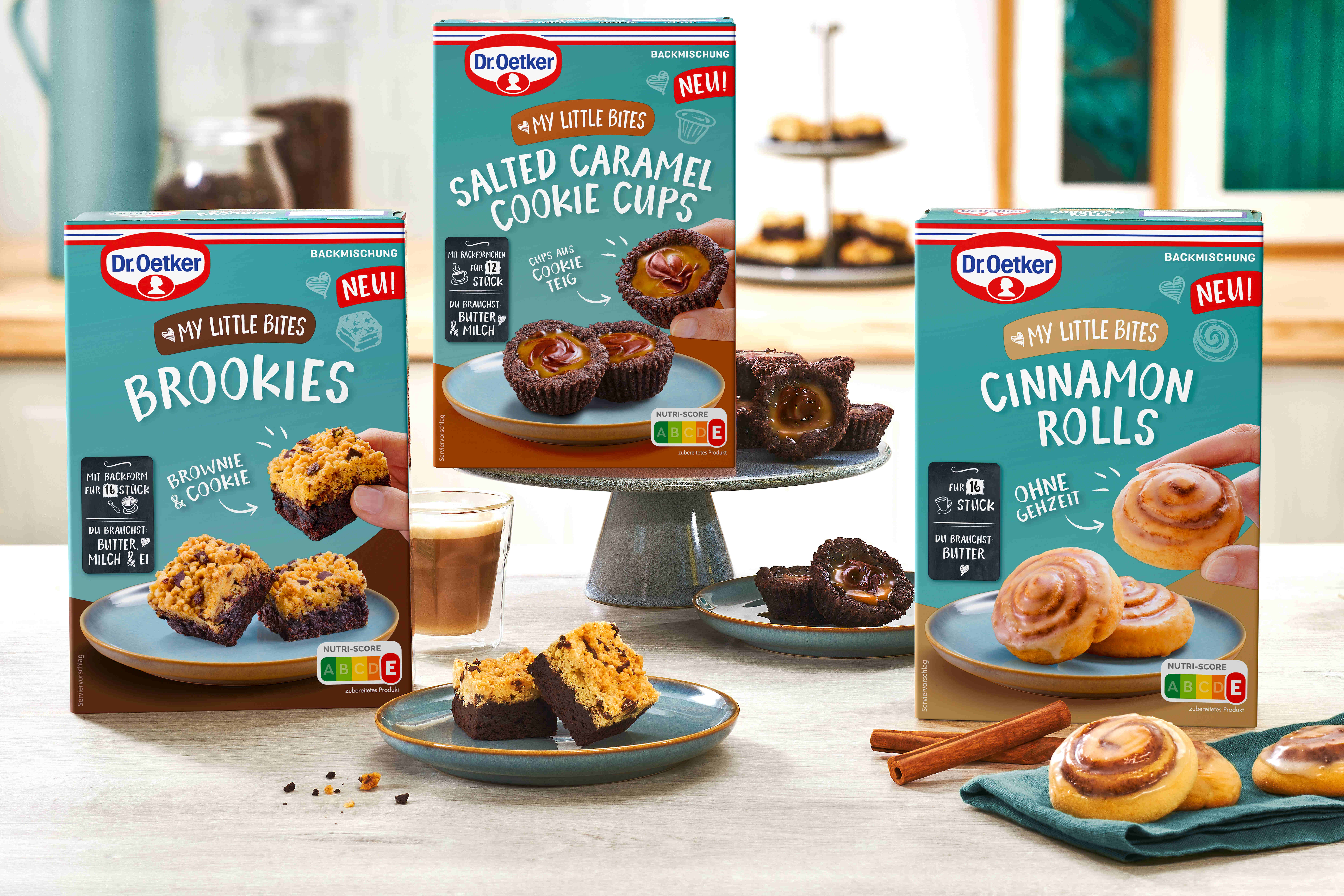 Mit den neuen Dr. Oetker MY LITTLE BITES Backmischungen in den Sorten Cinnamon Rolls, Salted Caramel Cookie Cups und Brookies kommt trendiges Gebäck aus den Cafés im Handumdrehen auch ins eigene Zuhause. Sie versprechen herrlich leckeren Kuchenspaß für die ganze Familie und eignen sich durch ihre Größe ideal als raffiniertes Fingerfood. Die MY LITTLE BITES Cinnamon Rolls überzeugen mit einem köstlichen Hefeteig-Geschmack, herrlichem Zimt-Geschmack und gelingen ohne Gehzeit. Innovativ sind auch die MY LITTLE BITES Salted Caramel Cookie Cups: Mit einer Füllung aus cremiger, gesalzener Karamellsoße, Schokolade und Butter sorgen die schokoladigen Cookie-Cups für eindrucksvolle Geschmackserlebnisse. Die benötigten Mini-Papierbackförmchen sind enthalten. Die MY LITTLE BITES Brookies überzeugen sowohl optisch als auch geschmacklich. Sie bestehen aus saftigem Brownie unten und knusprigen Cookie-Streuseln mit Schokostückchen oben. Die benötigte Papierbackform ist enthalten. Eine Packung der Sorten Cinnamon Rolls und Brookies ergeben je 16 Stück, die Salted Caramel Cookie Cups 12 Stück.