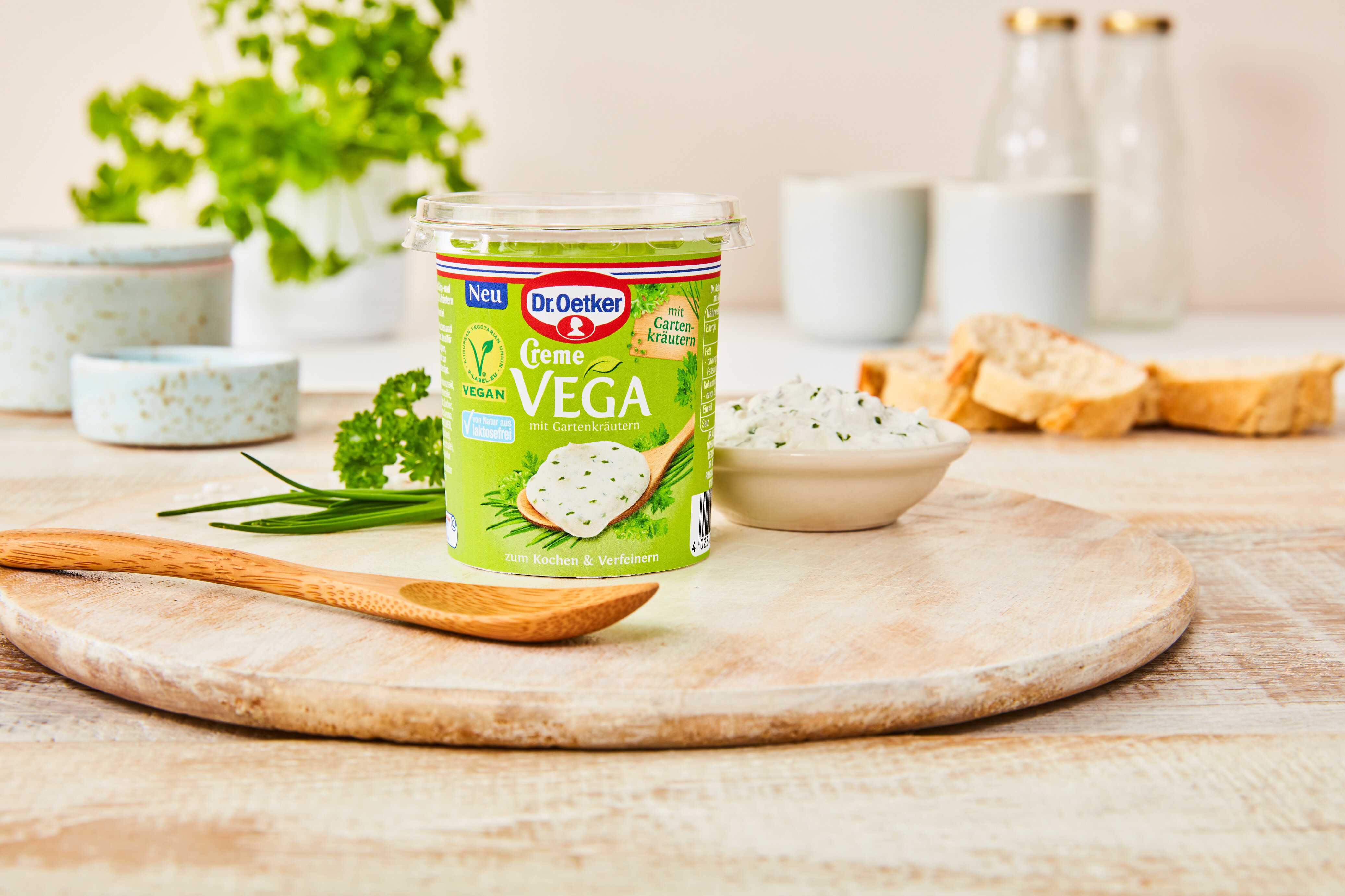 Creme VEGA mit Gartenkräutern erweitert die Auswahl an veganen Verfeinerungsprodukten von Dr. Oetker.