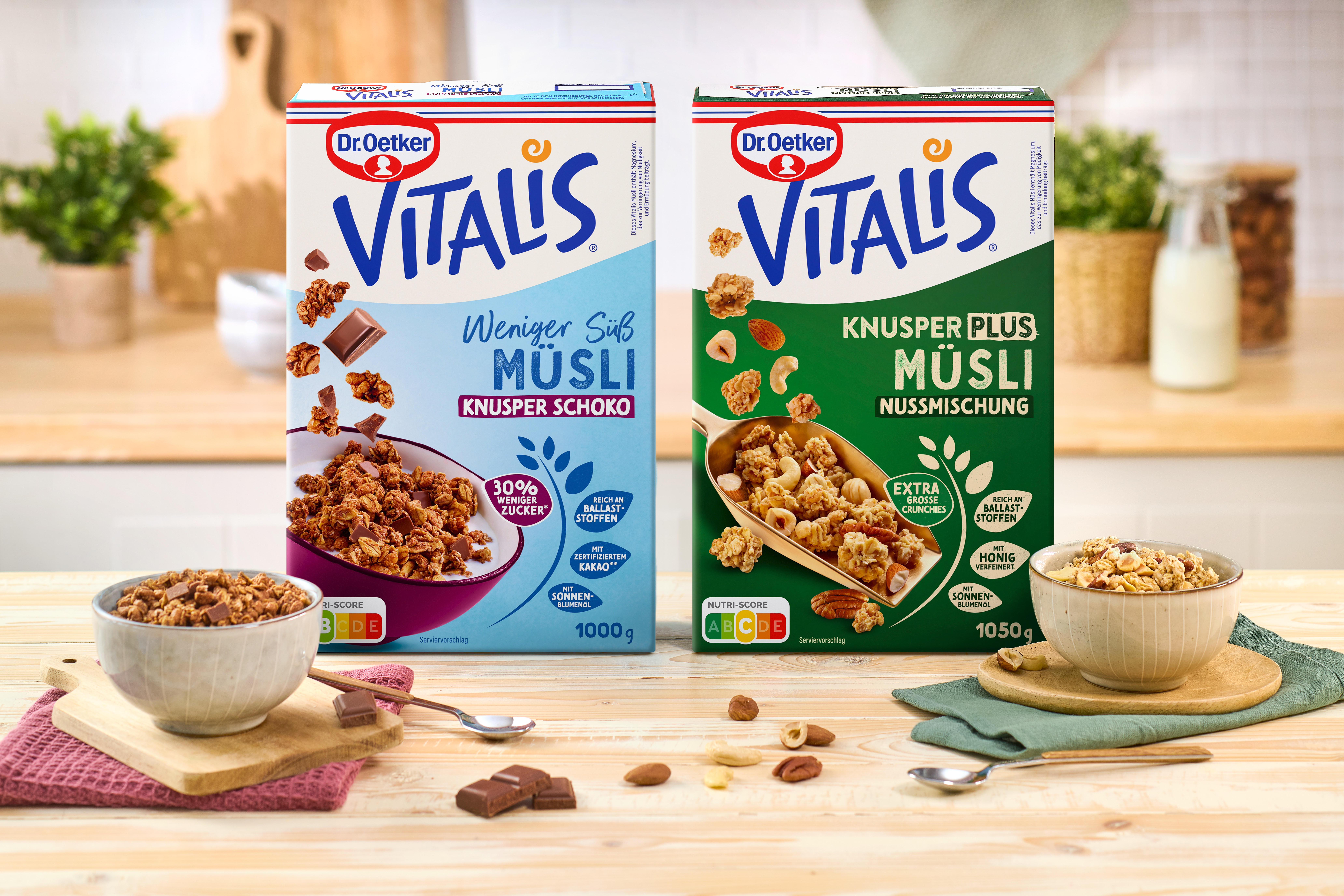 Die unverbindliche Preisempfehlung für eine Großpackung Vitalis KnusperPlus Nussmischung (1.050 g) oder eine Großpackung Vitalis Weniger süß Knusper Schoko (1.000 g) beträgt 8,79 Euro. Die Produkte sind ab März 2026 auch bequem im Dr. Oetker Online-Shop erhältlich.