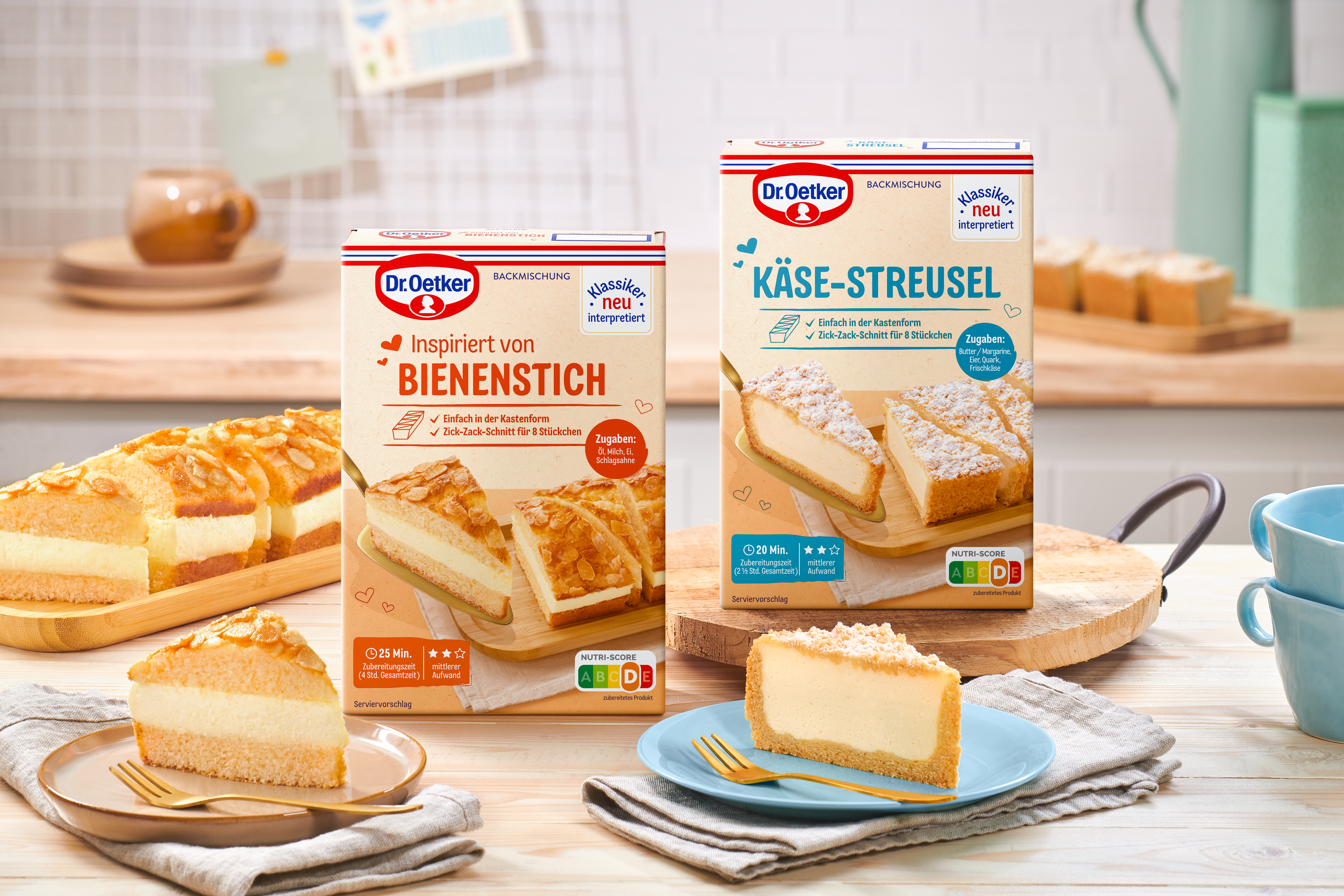 Kuchen, der „wie von Oma“ schmeckt: Die Dr. Oetker Backmischungen „Klassiker neu interpretiert“ in den begehrten Sorten Käse-Streusel und Inspiriert von Bienenstich werden unkompliziert in einer Kastenform gebacken. Durch einen raffinierten Zick-Zack-Schnitt entstehen aus jeder Sorte insgesamt acht Stückchen. Altbekannte Klassiker sind nach wie vor sehr beliebt, aber in ihrer Zubereitung oft mit viel Zeit und Aufwand verbunden. Um bewährte Kuchentraditionen einfach und schnell auf große Kaffeetafeln oder kleine Küchentische zu zaubern, sind moderne Interpretationen mit Gelinggarantie das beste Rezept. Kleine Portionen und großer Kuchengeschmack versüßen nicht nur Sonntage, sondern auch den Alltag mit unkomplizierten Backideen.