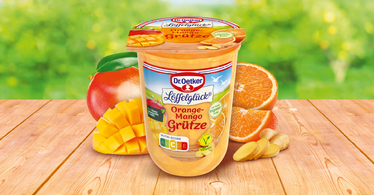 Bielefeld, Januar 2024 – Bald ist es wieder so weit: Der Sommer lässt zwar noch etwas auf sich warten, die Dr. Oetker Löffelglück Sommergrütze Orange-Mango sorgt aber schon ab März 2024 für sommerliche Gefühle. Mit einer exotischen Kombination aus Orange und Mango bringt die Sommergrütze eine Saison lang erneut fruchtige Abwechslung ins Kühlregal. Für das gewisse Etwas sorgt eine feine Ingwernote, die dem Produkt einen erfrischen-den Geschmack verleiht. Die Fruchtgrütze ist laut Gesetz frei von Konservierungsstoffen und mit dem internationalen V-Label zertifiziert. Sie trägt den Nutri-Score C.