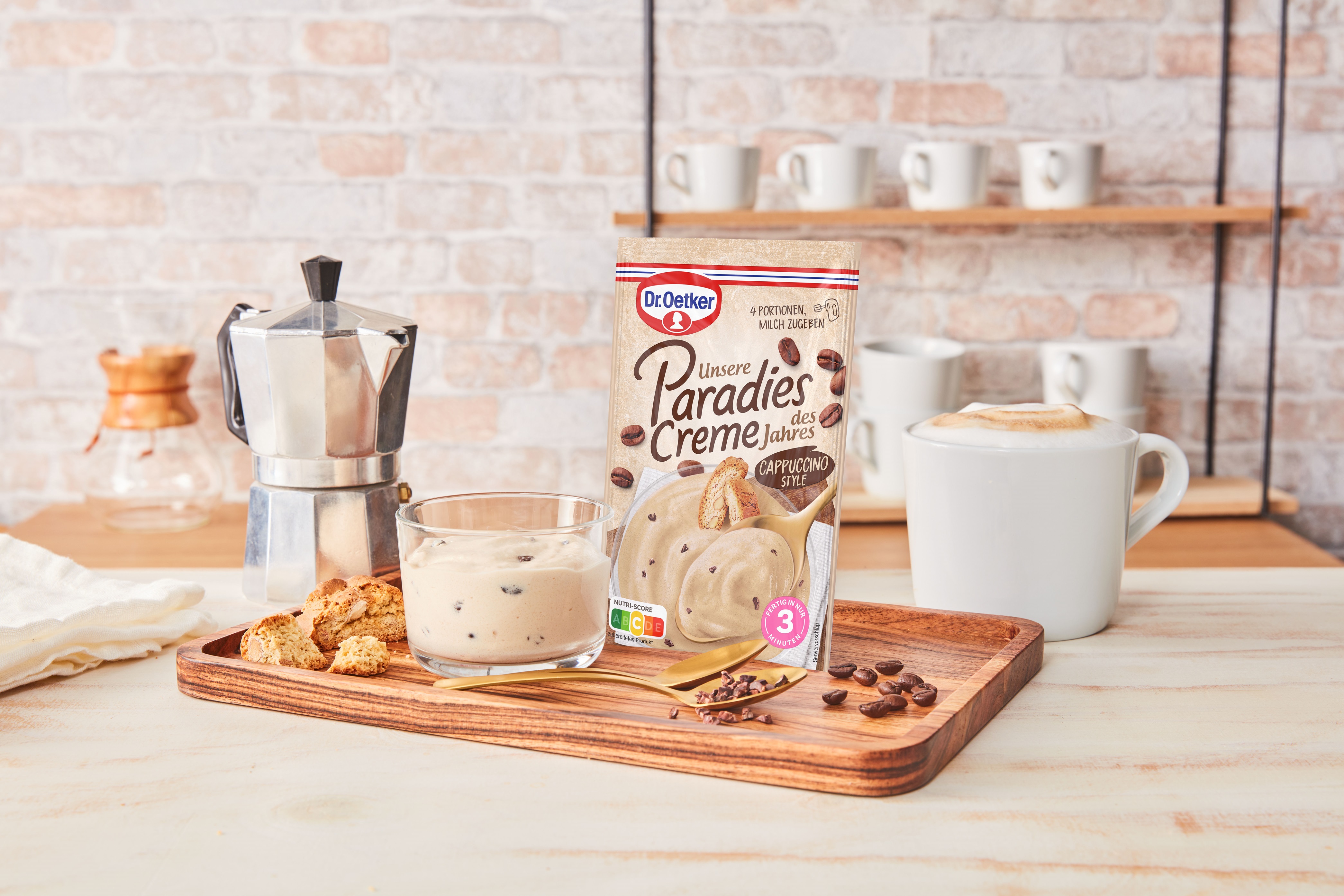 Bielefeld, Januar 2025 – Das neue Jahr bringt Kaffeegeschmack ins Dessertsortiment von Dr. Oetker. Ab Februar 2025 sorgt die Paradies Creme des Jahres Cappuccino Style für cremige Genussmomente im Dessertglas. Der Geschmack von Cappuccino kombiniert mit einer lockeren Creme sowie knackigen Kakaonibs bringt Abwechslung ins Sortiment. Wie gewohnt ist die Paradies Creme schnell als auch einfach zubereitet und ermöglicht spontane Genussmomente, die nicht nur Kaffeeliebhaber begeistern.