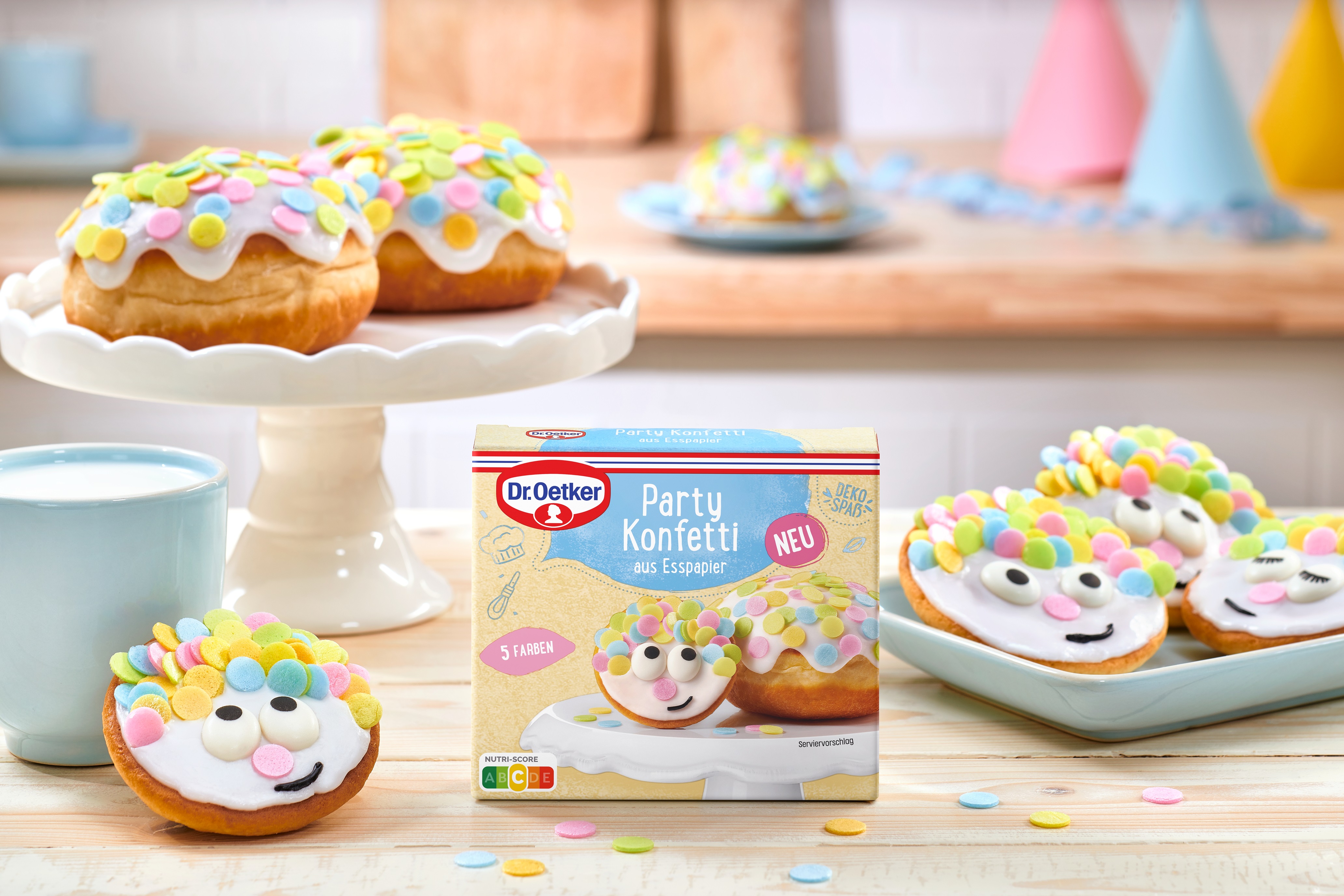 Das neue, bunte Dr. Oetker Party Konfetti aus Esspapier sorgt ab Mai 2025 für Party-Spaß auf Kuchen und Gebäcken. Es ist vielseitig einsetzbar und besonders beliebt für alle bunten Anlässe und Feste aller Art wie Geburtstage oder Karneval. So wird das ganze Jahr zu einer großen Feier! Die fünf Farben Grün, Gelb, Orange, Rosa und Blau garantieren ein fröhlich-buntes Deko-Ergebnis. Die farbenfrohe Optik sowie der leicht süße Geschmack machen das Party Konfetti aus Esspapier zu einem echten Highlight. Egal ob über das Gebäck gestreut oder darauf gelegt – hier sind der Kreativität keine Grenzen gesetzt. Dabei bietet das spielerische Verpackungsdesign bereits erste Inspirationen für mögliche Kreationen.