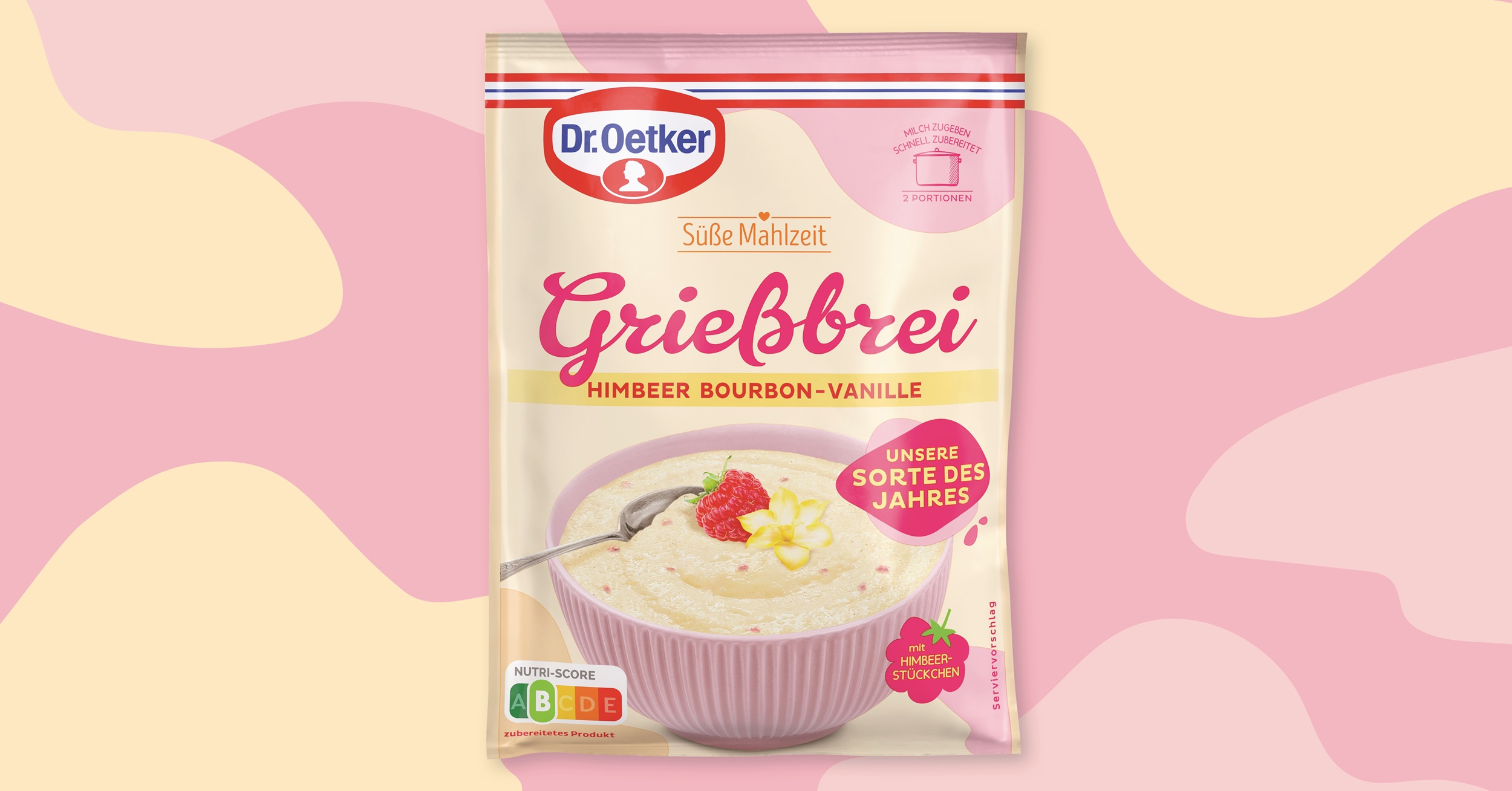 Dr. Oetker ist die beliebteste Marke im Bereich der süßen Trockenfertiggerichte.* Grießbrei gehört dabei neben Milchreis zu den beliebtesten Produkten der Kategorie.** Das Konzept „Sorte des Jahres“ ist bereits seit einiger Zeit im Bereich Dessertpulver durch die Dr. Oetker Paradies Creme etabliert und beliebt. Nun wird es mit der Süßen Mahlzeit Grießbrei Himbeer Bourbon-Vanille auch im Bereich Süße Trockenfertiggerichte eingeführt. Die limitierte Produktauflage sorgt für Dynamik im Regal und regt Shopperinnen und Shopper zu Impulskäufen an. Die trendige Geschmackskombination Himbeer Bourbon-Vanille spricht dabei vor allem auch jüngere Käuferinnen und Käufer an.