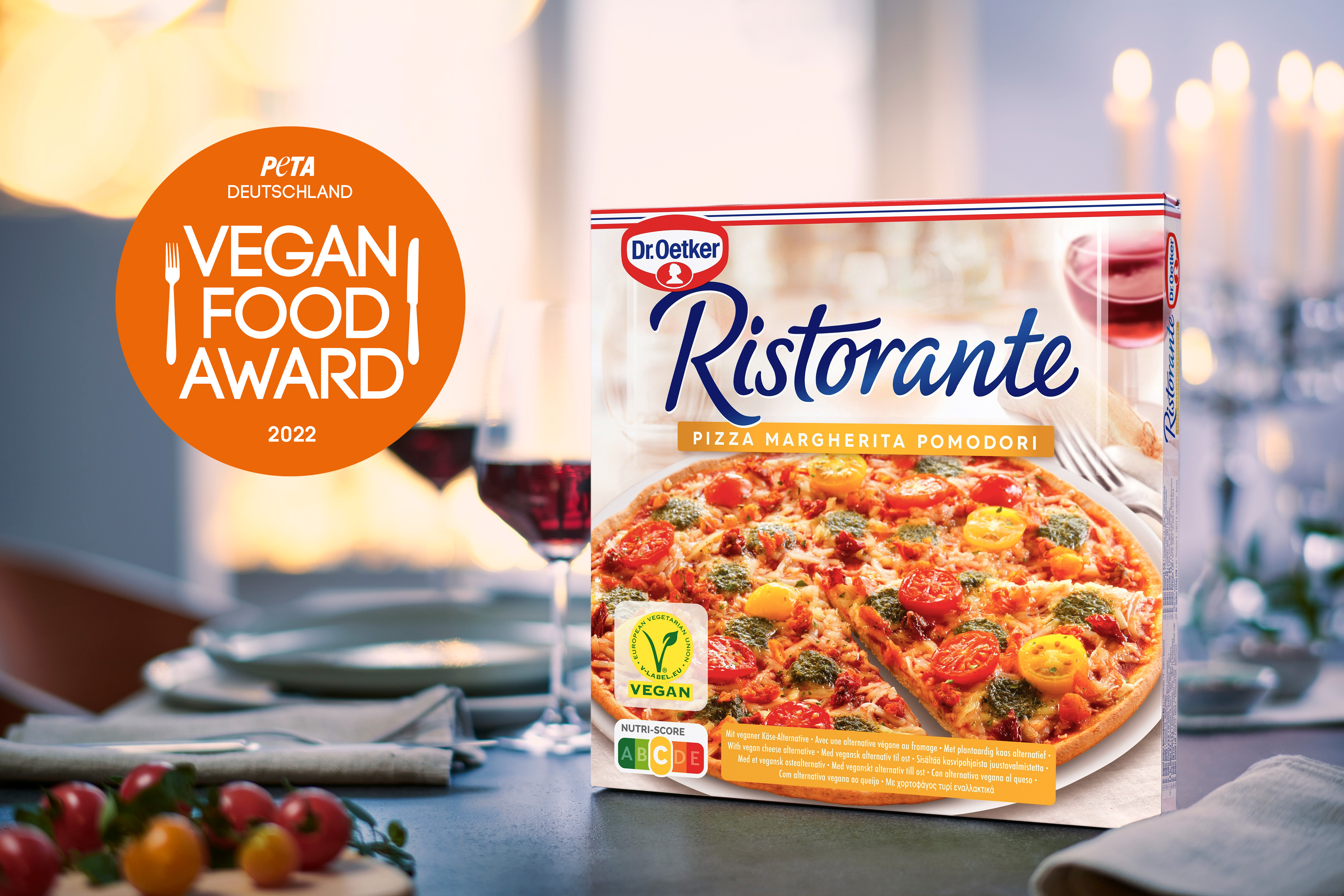 Dr. Oetker gewinnt mit der Ristorante Pizza Margherita Pomodori den Vegan Food Award 2022 für die beste vegane Tiefkühlpizza.