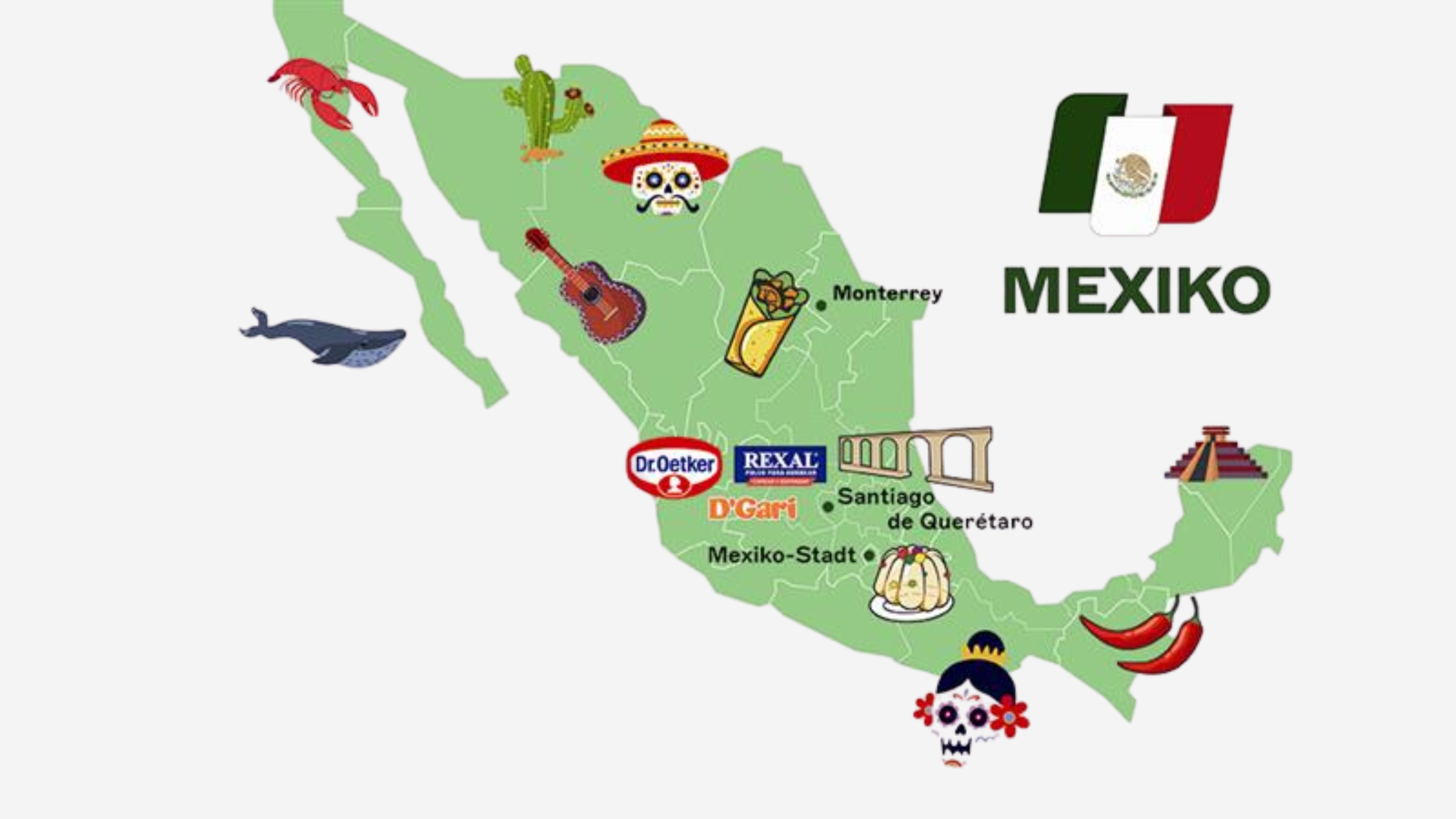 Auf zu Dr. Oetker nach Mexiko! Auch wenn die Marke hier eher unbekannt ist, kennt und liebt fast jeder Mexikaner die Götterspeise von D’Gari. Dr. Oetker hat das Unternehmen 2015 gekauft, 2017 folgte die für ihr Backpulver bekannte Grupo Rexal. Erfahrt, wie unsere Kollegen die Herzen der Mexikaner erobert und die Markführerschaft ausgebaut haben. Taucht ein in die mexikanische Küche und entdeckt die kulinarischen Leidenschaften der Menschen: Ihnen ist eigentlich nichts zu süß und sie lieben Chilis aller Schärfegrade.