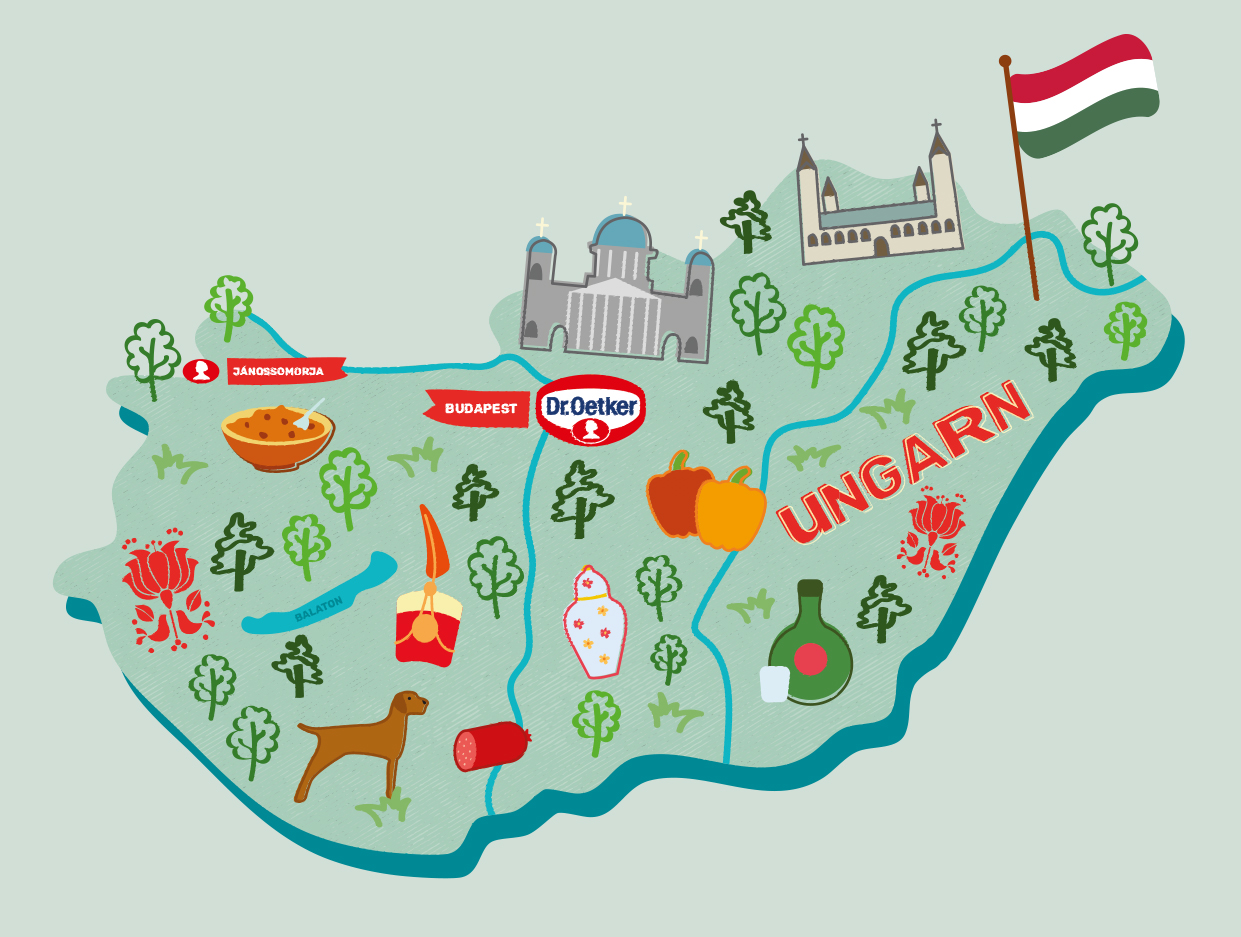 Dr. Oetker hat in Ungarn zwei Standorte: In Budapest arbeiten die Geschäftsführung sowie die Kollegen von Vertrieb, Marketing, Finanzen und Logistik. Am Produktionsstandort in Jánossomorja haben neben der Produktion auch die Produktentwicklung und der Einkauf ihren Sitz.