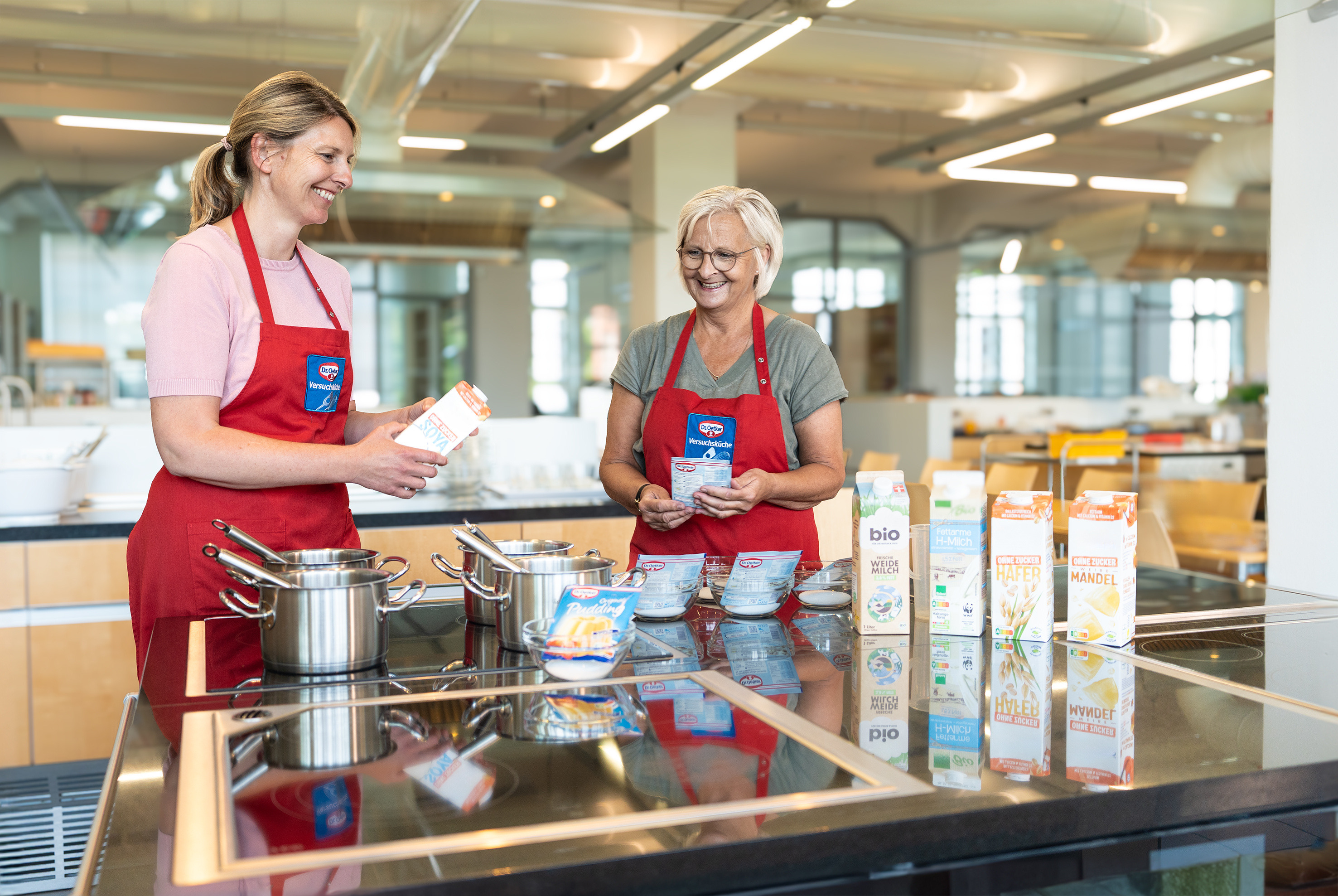 In the test kitchen, various diets are taken into consideration, for example vegan or lactose-free diets. For products that are vegan per se, such as the Dr. Oetker rice pudding or the Original Pudding, particular attention is paid to whether plant-based milk alternatives behave differently than cow milk during preparation.
