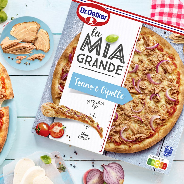 Dr. Oetker is committed to source only certified sustainable tuna for its products. An MSC ecolabel can therefore already be found on many of the packaging of our tuna pizzas.