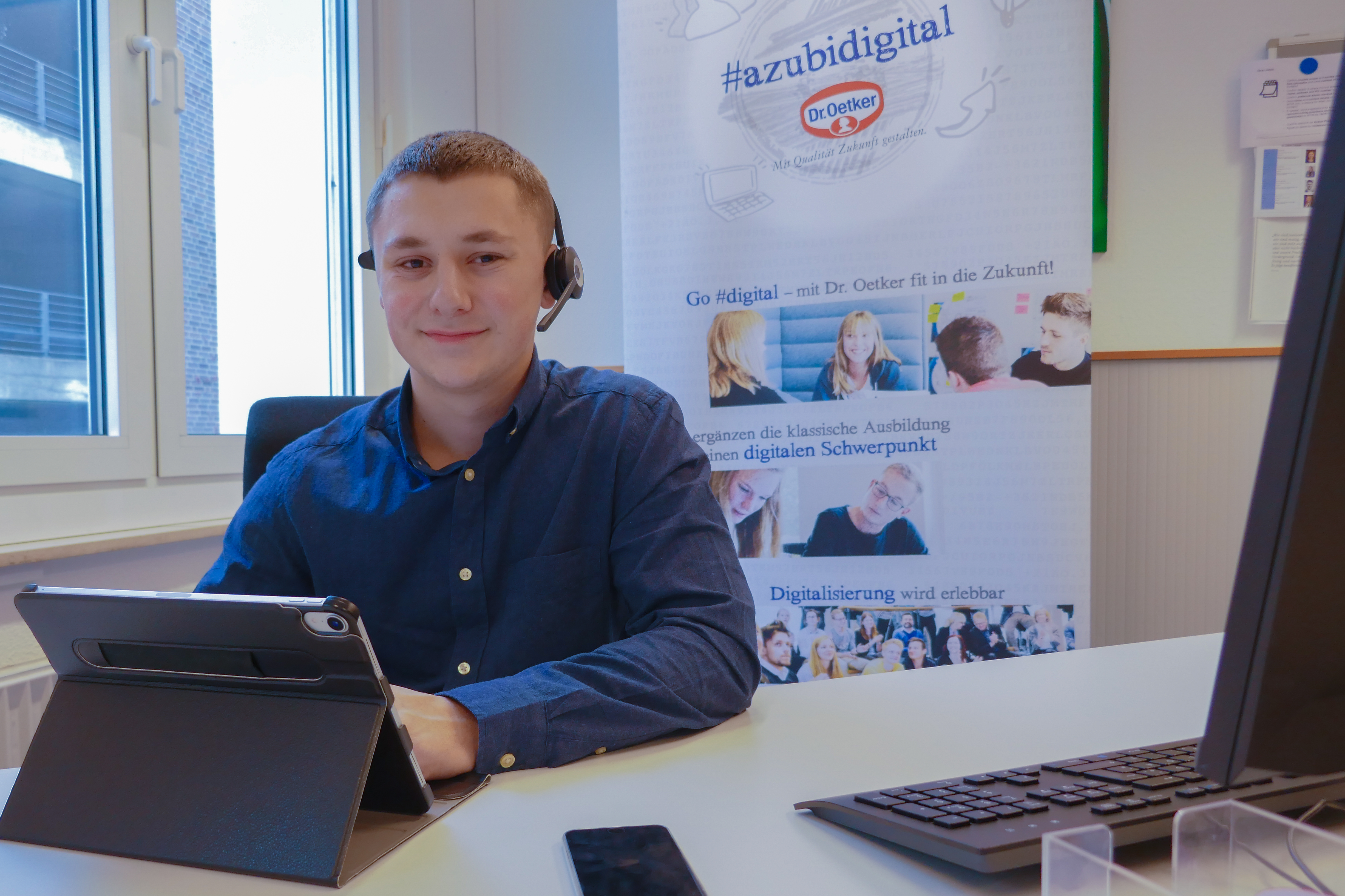 Daniel Penner is in the second year of his apprenticeship as a merchant for digitization management at Dr. Oetker in Bielefeld. He finds the working atmosphere and work-life balance particularly positive.