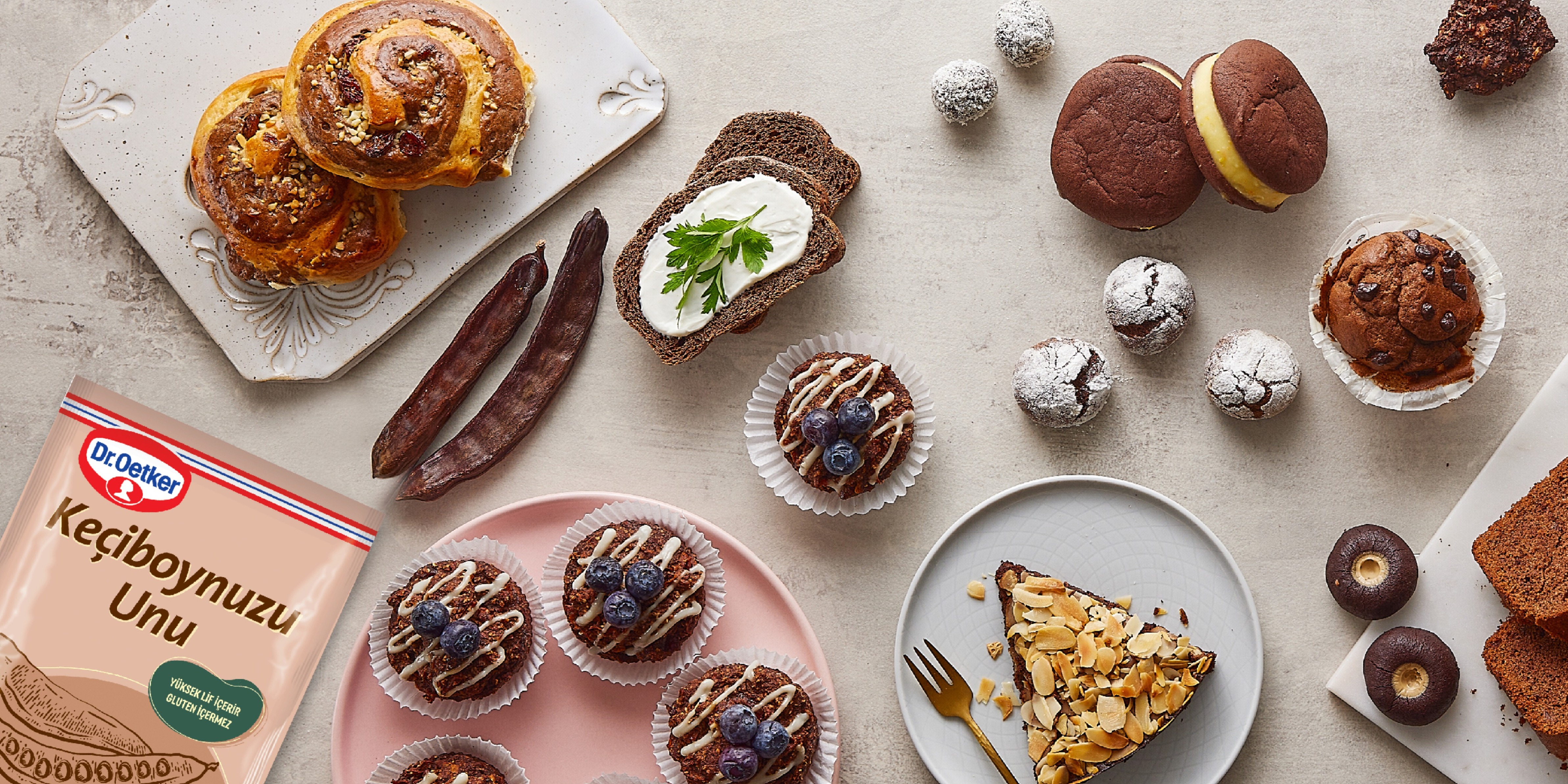 Dr. Oetker Keçiboynuzu Unu ile pratik bir şekilde hazırlanan kek, kurabiye,