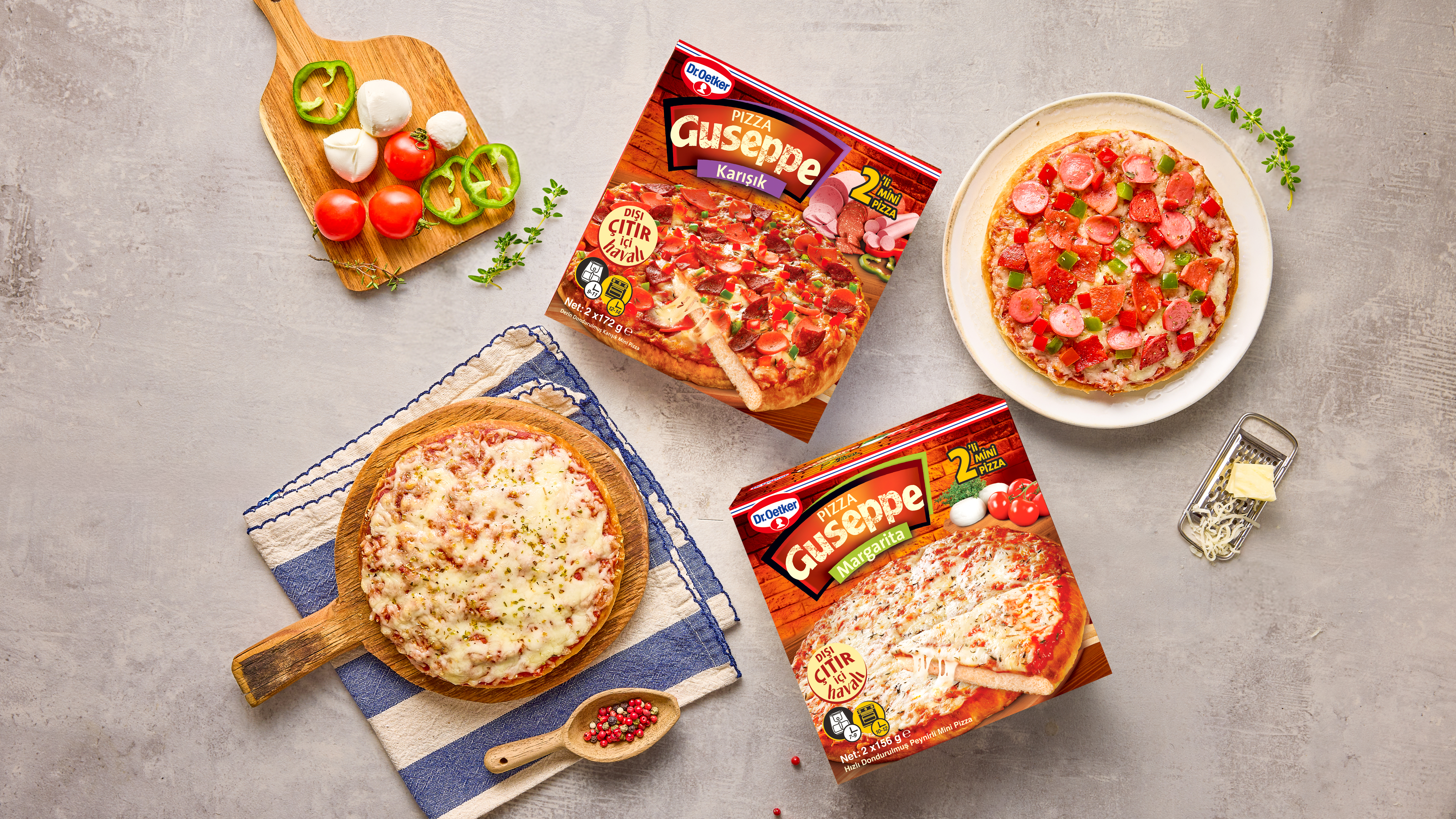 Dr. Oetker, sevilen Pizza Guseppe ailesine iki yeni ürün ekliyor: Mini Karışık ve Mini Margarita Pizza. Yeni 2’li Mini Pizza çeşitleri, Guseppe’nin ikonik lezzetini pratik, hızlı ve paylaşılabilir bir formatta sunuyor.